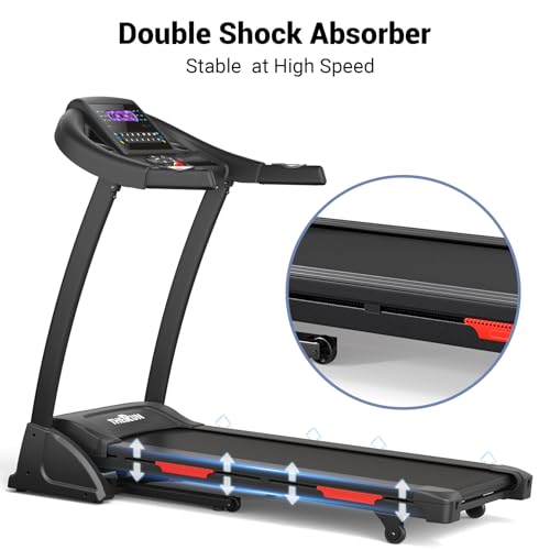 Quiet Dual Motor Bear 300 lbs Weight: THERUN treadmills for home features strong alloy steel frame and components to bear about 300 lbs, ready for for marathoners, sprinters, long distances runner and daily race trainer, 3.5 HP motors run the belt and power the incline easily, the noise may be ignored when running indoors