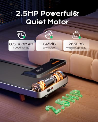 【Powerful Motor】: The under-desk walking pad with incline is equipped with a robust 2.5HP motor, supporting up to 265 lbs with superior stability and load-bearing capacity. The operating noise is less than 45 dB, ensuring minimal disruption to you and others.