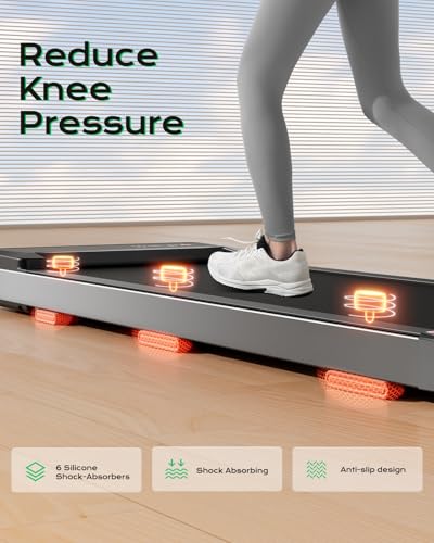 【Shock Absorption Design】: The Treaflow Walking Pad features six shock absorbers on the base, ensuring a smooth and comfortable running experience while significantly reducing joint impact.