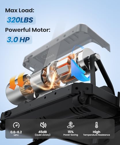 Powerful 3.0HP quiet motor delivers smooth performance with speed settings ranging from 0.6 to 6.2 miles per hour for walking and light running.