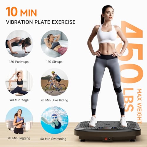 Specification: Vibration Plate Exercise Machine 450 Lbs Capacity,Vibrating Plate for Lymphatic Drainage,Power Shake Plate 199 Speeds for Weight Loss,Full Body Vibration Platform Machines for Women Men