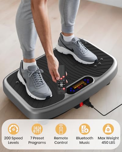 Vibration Plate Exercise Machine, Vibration Platform for Lymphatic Drainage, 200 Adjustable Speeds Power Shaping Vibrating Plate Helps Weight Loss, Shaping, Max Weight 450 Lbs