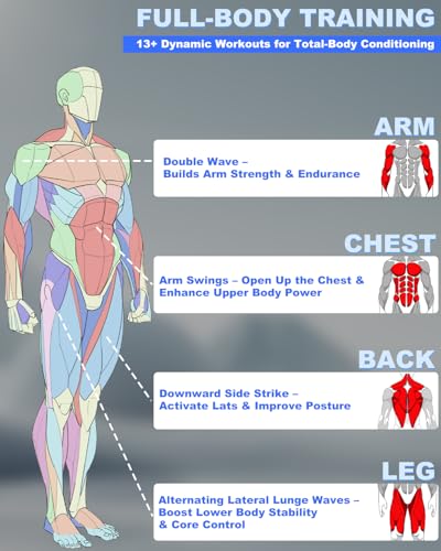 All-in-One Weighted Resistance: From beginners to athletes, this ropeless battle ropes for home gym builds strength and cardio in one portable tool. It activates arms, shoulders, and core like traditional battle ropes, making it ideal for ropeless battle ropes for working out anywhere