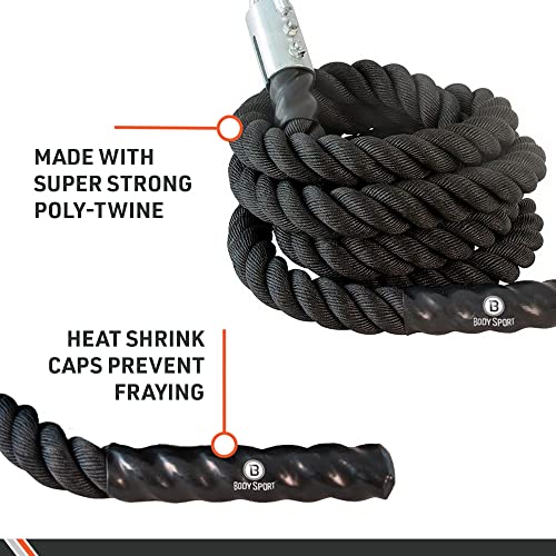 Body Sport Training Rope – Thick Battle Rope for Home or Gym Use, Long Durable Workout Rope – Made with Super-Strong Poly-Twine – Stands Up to Repeated Use Indoors & Outdoors