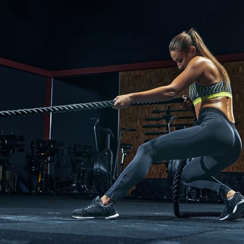 Specification: MECCANIXITY Battle Rope 20ft x 1 Inch Polyester Workout Rope Heavy Fitness Exercise Rope for Strength Training Home Gym Muscle Building, Black Yellow