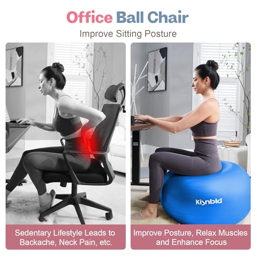 𝐀𝐍𝐓𝐈-𝐁𝐔𝐑𝐒𝐓 – Built with sturdy and non-toxic PVC material, the kisnbld balance ball won’t burst suddenly even if the ball chair is punctured in an abnormal situation, it will resist bursting and deflate slowly thanks to the honey comb structure and premium material, offering you the best protection, so no worries about the burst or losing its shape.