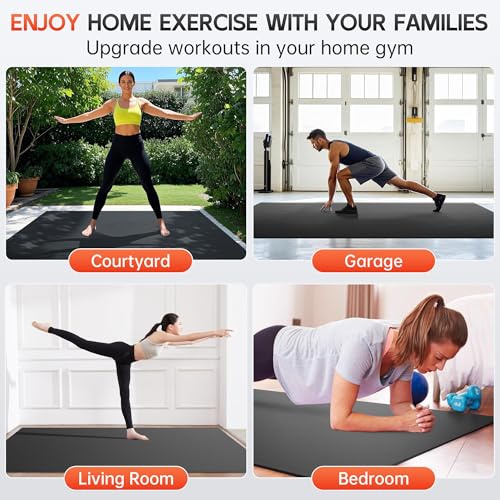 Large & Optional Sizes for All Fitness Needs: Choose from spacious sizes (6’×4’, 7’×5′, 8’×6′, 10’×6′) to fit your workout space and routines. Perfect as exercise mats for home workout, offering ample room for solo, couple, or group fitness activities like yoga, HIIT, cardio, dance, Zumba, weightlifting, and strength training. Shoe-friendly design for ultimate flexibility