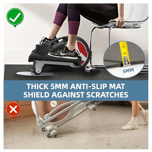 【Universal Fit for Most Under-Desk Fitness Equipment】– Measuring 23.6” x 17.7” x 0.2” (60 x 45 x 0.5 cm), this mat fits 98% of under-desk ellipticals, step machines, and seated pedal exercisers. Whether your equipment is compact or full-sized, it provides full coverage to stabilize and protect. Pro tip: Check your device’s base dimensions before purchase for a perfect fit