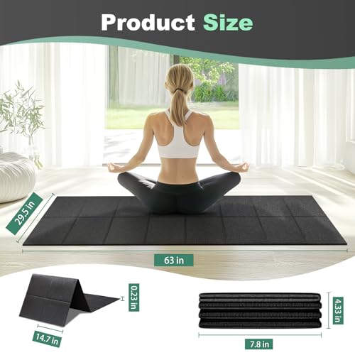 Treadmill Mat, Exercise Equipment Mat 63″x30″, 1/4″ Thick, Foldable Non-Slip Waterproof Surface for Walking Pad, Stationary Bike, Elliptical, Carpet & Hardwood Floor Protection, Noise Reduction