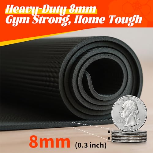 🎯【Superior Shock Absorption & Joint Protection】Our 8mm thick large yoga mat cushions your joints, absorbs shock, and protects your floor. Whether you’re wearing shoes or barefoot, this large yoga mat supports heavy-impact exercises like jump squats or kettlebell swings. It’s not just a gym mat—it’s a large yoga mat designed for comfort, noise reduction, and full-body workouts