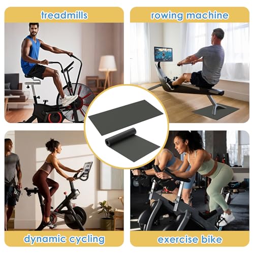 SIZE SUITABLE FOR BIKES: Exercise bike mat for floor measures 23.6 x 11.8 inches (60 x 30 cm) and fits most bike trainers and rowing machines on the market. It is 0.12 inches (3mm) thick and made of rubber material: mat only, machine not included,mat for exercise bike