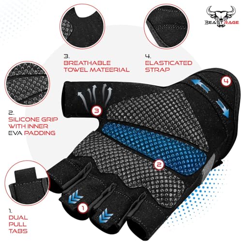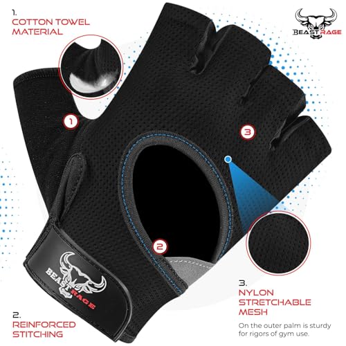 BEAST RAGE Fingerless Weight Lifting Gloves with Palm Protection Padding, Breathable Lightweight Gym Gloves for Men, Women, Weightlifting, Cycling, Exercise, Training Pull Up