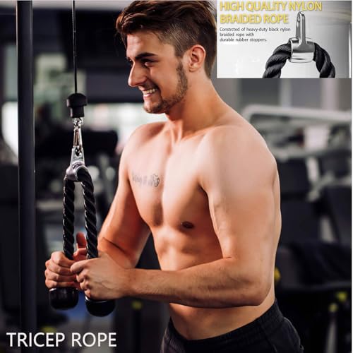 Cable Machine Attachments Home Gym, Triceps Rope, V Handle Cable Attachment,39inch LAT Pull Down Bar, Straight Rotaing Bar
