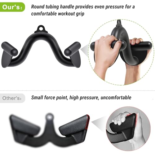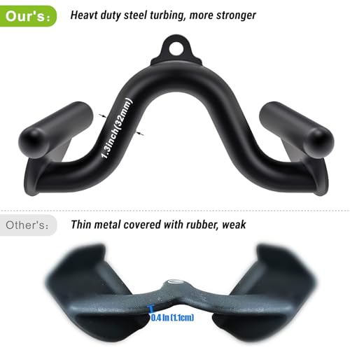 The round tubing structure allows different hand positions cable machine workouts like Lat pull down, triceps press down, rowing, back strength training and more.