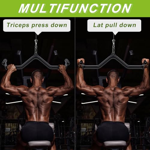 SELEWARE LAT Pull Down Bars Cable Machine Attachment Heavy Duty Steel Tubing Structure Home Gym Workout Attachments Triceps Press Down Bar for Cable Machine Back Strength Training V-Bar Rowing Set