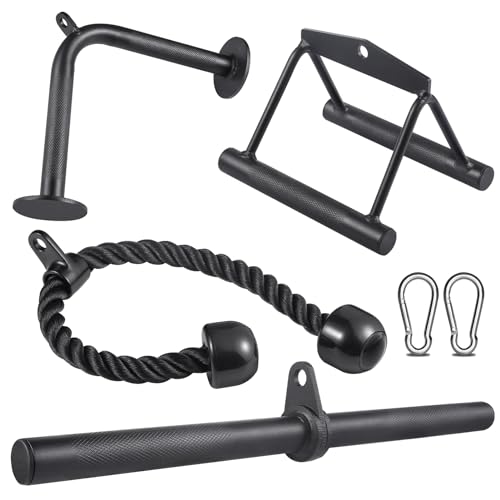 SERTT Workout Cable Machine Attachment for Home Gym, LAT Pulldown Attachments, Cable Accessories for Weight Training, Straight Pull Down Bar, Tricep Rope, Double D Row Handle, V-Shaped Bar