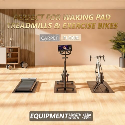 Specification: 63″x30″ Walking Pad Mat for Carpet Floors,Under Bike Treadmill Mat for Hardwood Floor Protection,0.24″ Thick Exercise Equipment Matt Compatible with Peloton Matt Stationary Exercise Bike Trainer Pad