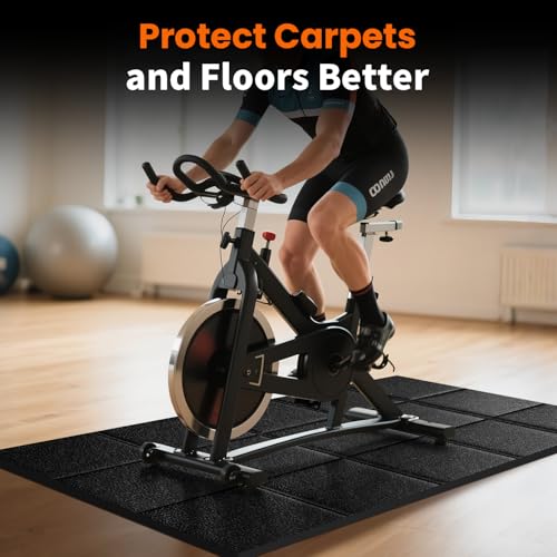 【Protect the Carpet】This exercise mat can be used as a protective mat for wood floor, tile floor, vinyl floor, low-pile carpets and cement floors and fitness equipment. It will easily fit your Peloton or other bikes on top. It perfectly fits most equipment