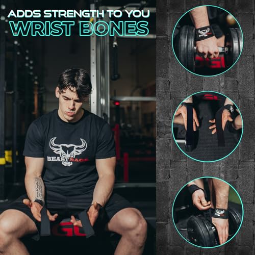 BEAST RAGE Lifting Wrist Straps for Weightlifting, Weight Lifting Straps Gym Grip Power Workouts Lifting Straps Padded Cotton Men Women Wrap Lift Deadlift Straps Hard Pull Exercise