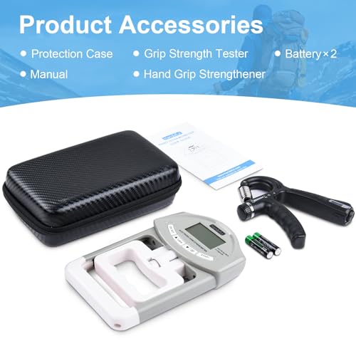 Electronic Grip Strength Tester Set With Adjustable Hand Gripper, Hand Dynamometer, Protection Case – Precision Training for Rehab, Fitness, and Home Gym