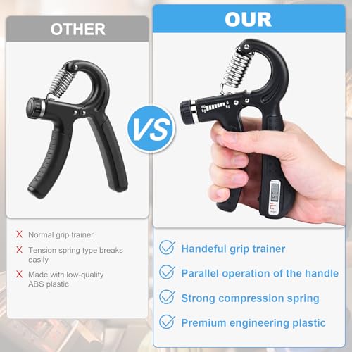 Accurate Measurement: The included dynamometer meter features a high-precision strain gauge sensor, accurately measuring your grip strength up to 198Lbs / 90Kgs with 0.2Lbs / 0.1Kgs increments.