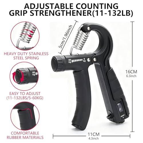 【SMART COUNTER & ADJUSTABLE HAND GRIPPER STRENGTHENER】Track Progress Precisely Our advanced hand gripper features a digital click counter that automatically records every rep. The 360° dial adjusts resistance from 11 to 132 lbs (11-132 lbs), making this grip strength trainer perfect for setting and smashing progressive goals. It’s the ultimate hand gripper strengthener for athletes, climbers, and fitness enthusiasts who demand measurable results.