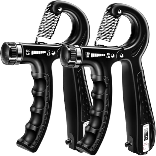 Hand Gripper – Adjustable resistance range 10-130Lbs (5-60kg), made of heavy-duty plastic and reinforced metal alloy materials.