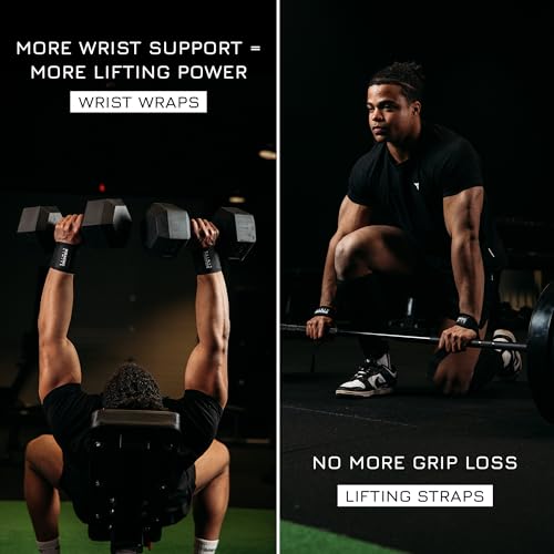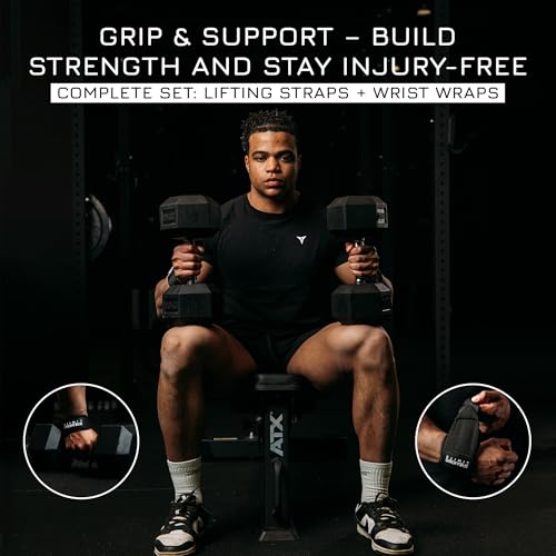 💪 UNBEATABLE SET – These wrist wraps are the perfect addition to your gym equipment. Our gym wrist straps help stabilize your wrists, while the lifting straps provide a stronger grip on the barbell.