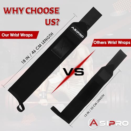 ASIPRO 18″ Professional Grade hand wraps for weight lifting offer premium support for weightlifting. Crafted from high-quality materials with heavy-duty stitching, they ensure durability and support for achieving strength training goals faster. These wristbands for lifting weights provide exceptional stability and strength during intense weightlifting exercises, essential for professional enthusiasts. With maximum support and flexibility, bench press wrist wraps prevent unnecessary extensions during workouts. Additionally, wrist wraps lifting offer ultimate wrist protection, allowing users to lift heavier weights with confidence. The enhanced loop of wrist wraps for weightlifting men & women design provides a stable grip for lifting heavy weights, enhancing training sessions.