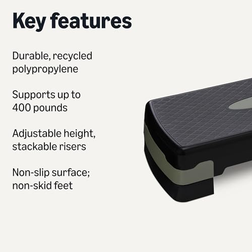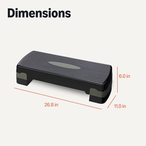 Specification: Amazon Basics Aerobic Exercise Step Platform, Adjustable Workout Stepper At Home, 27″, Black/Grey