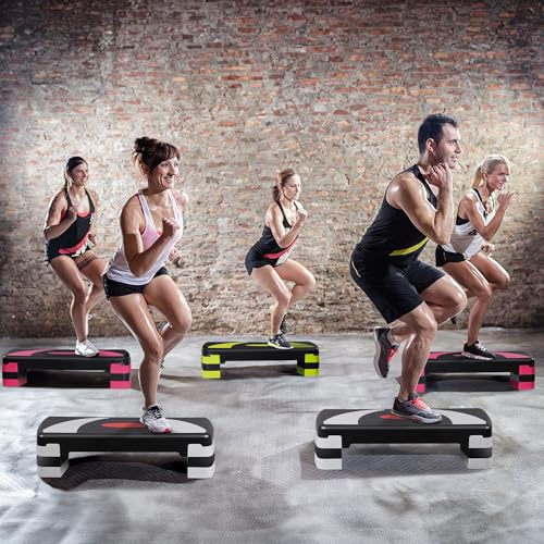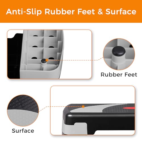 【Impressive Weight Capacity】Sturdy yet lightweight stepper supports up to 550 lbs. The 4 risers included lock securely under the main platform with a mortise-tenon design, ensuring immobility during vigorous exercise. A durable, adjustable home fitness step designed for users of all sizes.