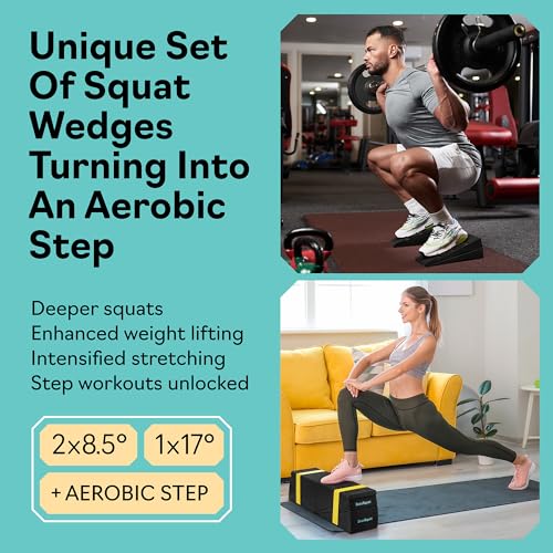 UPGRADED WORKOUTS. With a squat blocks wedge set, you enhance ankle mobility and put less pressure on your joints. It’s not only for a calf workout: the wedges improve your posture and help intensify your regular training for better results