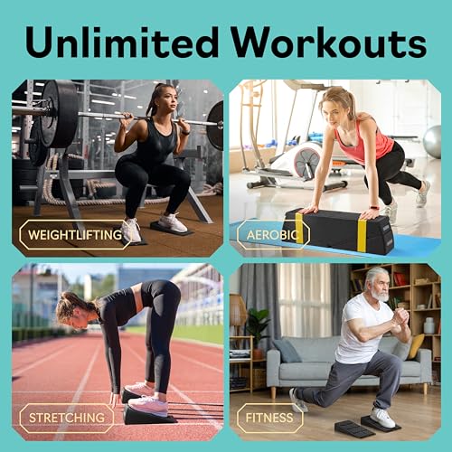 BUILD A FULL-BLOWN AEROBIC STEP! Use the wedges as a slant board for squats (heels raised) or as a calf stretcher slant board (toes raised) with angles ranging from 8.5 to 34 degrees. Or combine them into a stepper to unlock more exercise types