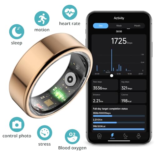 Specification: R02 Smart Ring, a Smart Ring for Women and Men, with a Charging case, Supports Heart Rate, Blood Oxygen, Sleep Health Monitoring, and Sports Tracking Ring. (Rose Gold, 9#)