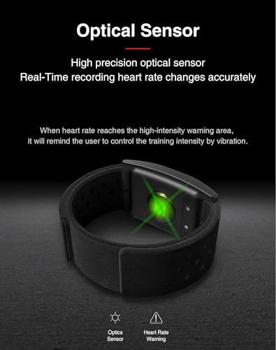 Optimal wearing style: The cycling heart rate monitor is recommended to wear it on the upper arm, forearm, and near the elbow joint, with a comfortable fit. Made of soft, breathable material and an adjustable strap, it ensures a secure and comfortable fit. The armband’s 35cm length accommodates a wide range of body shapes and sizes, and weighs 13g. It’s a comfortable, stress-free fit and keeps the running heart rate monitor securely in place.
