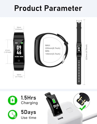 【Long Battery Life】- This fitness tracker watch is charged through the built-in USB. You just need to take the watch body out of the strap, then insert the end with the metal piece into any USB port to charge. It only takes 2-3 hours to charge fully and can service you for up to 5 days. (Tips: Please charge the watch in time before it runs out of the battery, otherwise you need to set the watch again.).