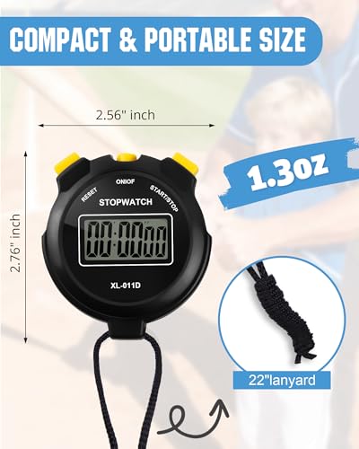 [Compact & Portable Size]: This stopwatch for coaches is just 2.76″ (L) × 2.56″ (W) × 0.71″ (H), weighing only 1.3oz – comfortable grip, pocket-friendly for easy carry. Includes a 22″ lanyard to hang around your neck, freeing hands for focused coaching