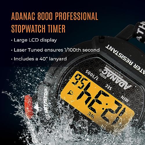 Marathon Adanac 8000 Professional Digital Stopwatch with Touch Feedback, Black, Black