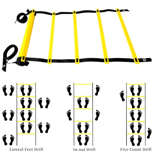 Specification: 20ft Agility Ladder – Speed Ladder for Soccer with Carry Bag & Straps | 12 Adjustable Rungs | Soccer, Agility Training Equipment | Durable Footwork Ladder for Athletes (Yellow)