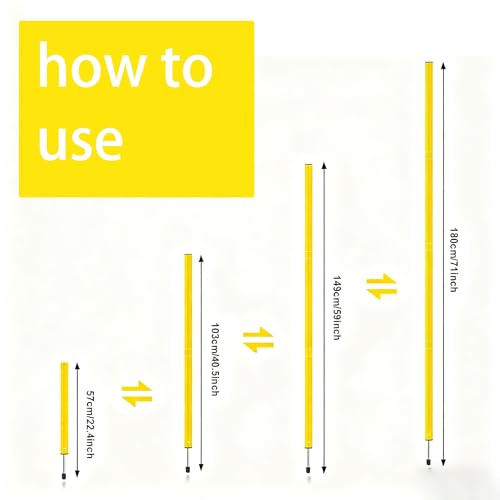 Versatile Soccer Agility Poles: 6 poles (3 sections each, 19.6in/section) – max height 59in (1.5m). Equipped with 5.12in ground spikes (stainless steel, pointed) for easy insertion and stability on grass, sand, soil, etc.