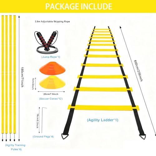 Unleash Athletic Potential: The Ultimate Agility Training Kit for Soccer & Football Elevate your game with our professional Agility Training Equipment Set, designed for kids, youth, and athletes of all levels. This complete footwork drill kit is engineered to build explosive speed, lightning-fast agility, and superior coordination, transforming your practice sessions. 【What’s Included: Your Complete Training System】 This all-in-one training kit arrives ready for action: 20FT Agility Ladder: Features 12 adjustable rungs for endless footwork drills. Built with heavy-duty nylon and flat-step design for safety on any surface. 12 Bright Orange Disc Cones: Highly visible and durable for setting up dynamic sports practice courses. Multiple Training Accessories: Depending on the version you choose, enhance your workout with additional tools like a Solo Reaction Trainer for reflexes or Adjustable Hurdles for jump training. Convenient Carry Bag: Keep your training gear organized and portable for the field, court, or home gym. 【Who Is This For? The Perfect Sports Gift】 Ideal for boys and girls aged 8-14, aspiring youth athletes, coaches, and teams. Perfect for soccer, football, basketball, lacrosse, and other sports. It’s the ultimate gift to boost confidence and performance. 【Why Choose Our Training Kit?】 We focus on durability and versatility. Our equipment is built to withstand rigorous workouts, making it a staple for athletic training and PE class drills. 【Order Now & See the Difference!】 Don’t just practice, practice smarter. Add to Cart today and build the skills of a champion!