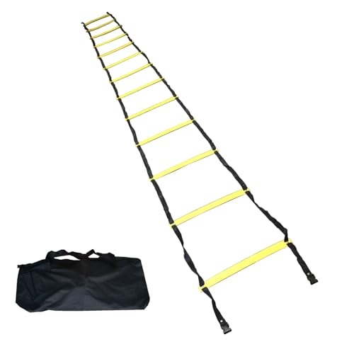 Speed Agility Training Sports Ladder 15 Feet Product Features: 15 Foot Speed ladder with yellow rungs and Black Strapping Perfect for CrossFit Cross Fit Training Work Outs! Speed and Agility Ladders are excellent for any sport – from tennis to football to soccer; your athletes will see results when using a speed ladder! Perfect for CrossFit Cross Fit Training Work Outs! Designed for use on any surface – grass, cement, artificial turf, wood basketball courts and more! Connect multiple ladders together with high quality buckles. Not cheap plastic buttons! Bonus: Free Carrying case included!