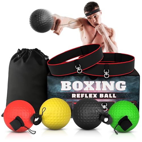 Specification: Boxing Reflex Ball Set with 4 Difficulty Balls & 2 Adjustable Headbands – Reaction Ball Training Kit for Adults, Improves Speed, Focus, Coordination, Valentines Day Gifts for Men, Boxers, Fitness Fans