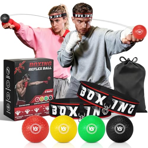 Come with 2 Adjustable Headbands: The boxing headband reflex ball includes 2 adjustable, secure, and comfortable punching ball headband, lets you customize the perfect fit for your head circumference. And the anti-slip strips can keep the boxing reflex ball in place during strikes. 4 balls total for 2-person competitive fun. The reflex game is perfect for families, friends, or partners to train together.