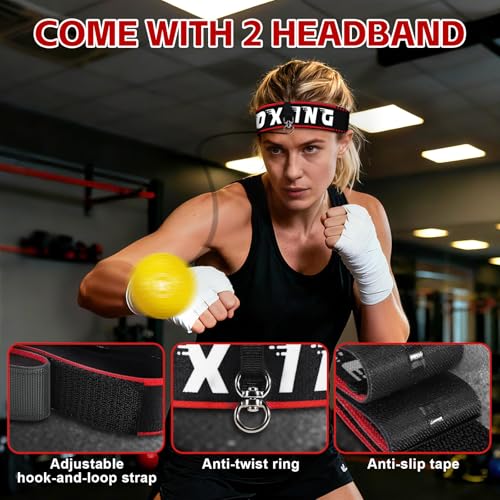 Specification: Headband Boxing Reflex Ball, 3 Levels Reaction Ball with 2 Adjustable Headbands, Boxing Training Equipment for Reaction, Punching Speed, Hand Eye Coordination