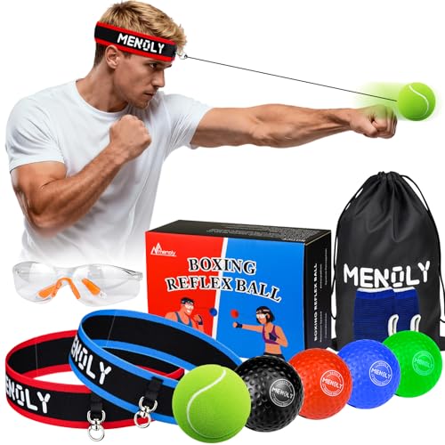 Specification: MENOLY 5pcs Boxing Reflex Balls Set, 2 Adjustable Headbands, 1 Pair Goggles and Gloves, Speed Training Equipment for Hand Eye Coordination, Agility, Great Gift for Men, Boxers & Fitness Fans