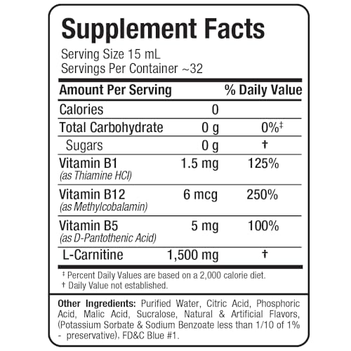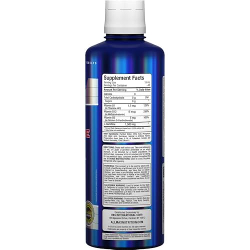 Specification: AllMax Nutrition Liquid L-Carnitine 1500 Miligrams, Blue Raspberry, 16 oz (473 ml)
