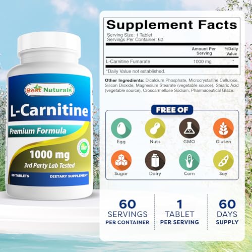 Best Naturals L-Carnitine 1000mg 60 Tablets (60 Count (Pack of 1))