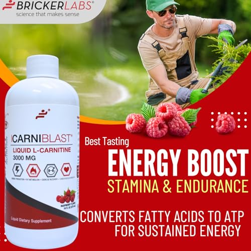 Bricker Labs CARNIBLAST Liquid L-Carnitine 3000mg, Premium L Carnitine Carnipure, Energy Nutrition, Energy Supplement and Energy Booster, Raspberry, 16 fl oz