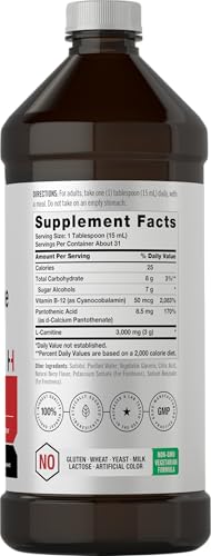 Specification: Horbäach L-Carnitine Liquid 16 oz | 3000 mg | Berry Flavor | Vegetarian Formula | Non-GMO, Gluten Free Supplement